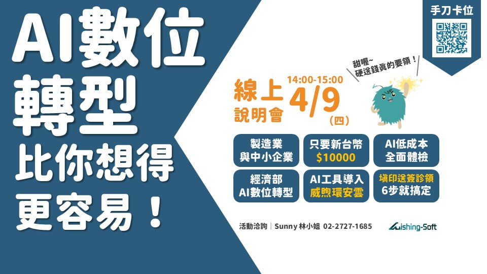 數位轉型 【內容重點提要】 低成本入門: 只要 $10,000,即可啟動企業 AI 全面體檢。 政府...
