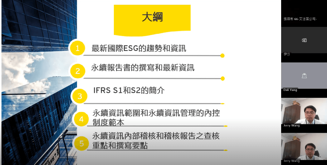 - 永續報告書編制(GRI / TCFD / ISSB)