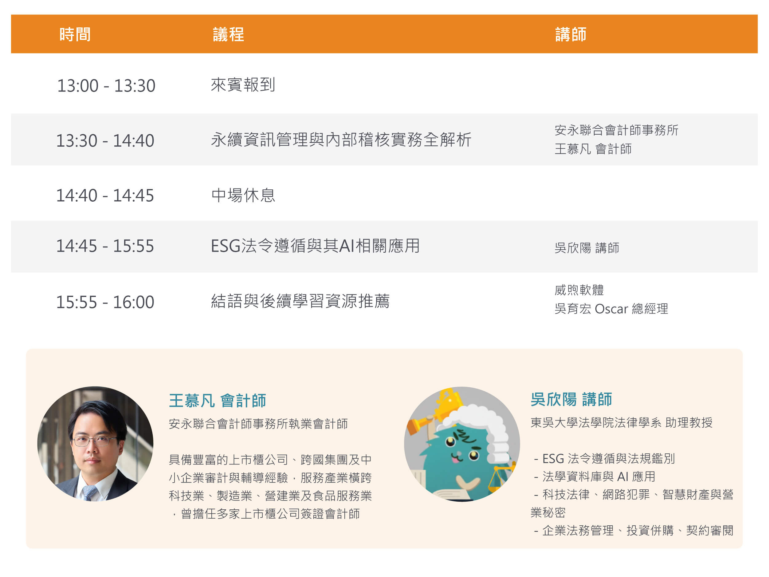 - 活動名稱:ESG 時代合規力|從法規遵循到公司治理的關鍵執行步驟