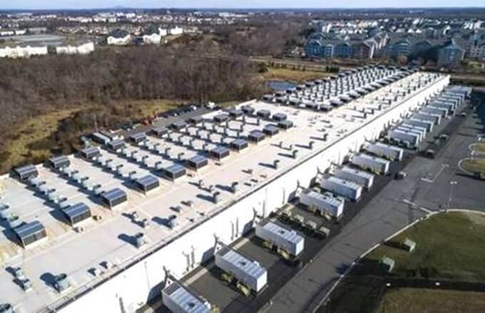 每一「資料中心」各有數千數萬台伺服器(Server),以強大的電力,驅動數萬顆核心GPU晶片執行超高速運算,大量伺服器高速運算之後,必將產生極浩大的熱量,其最終的散熱方式,必然是藉著無數的「冷卻水塔」,以水蒸氣型態,攜帶驚人熱量排放入大氣層(Atmosphere),成為地球暖化的最新型「大熱源」, 唯有本「永續空調系統」專利工法,解決Data Center如烤箱級的難題。請見下圖:一座資料中心屋頂上數不清的冷卻水塔(圓筒形物體),可見一座資料中心所排放的熱有多麼驚人。