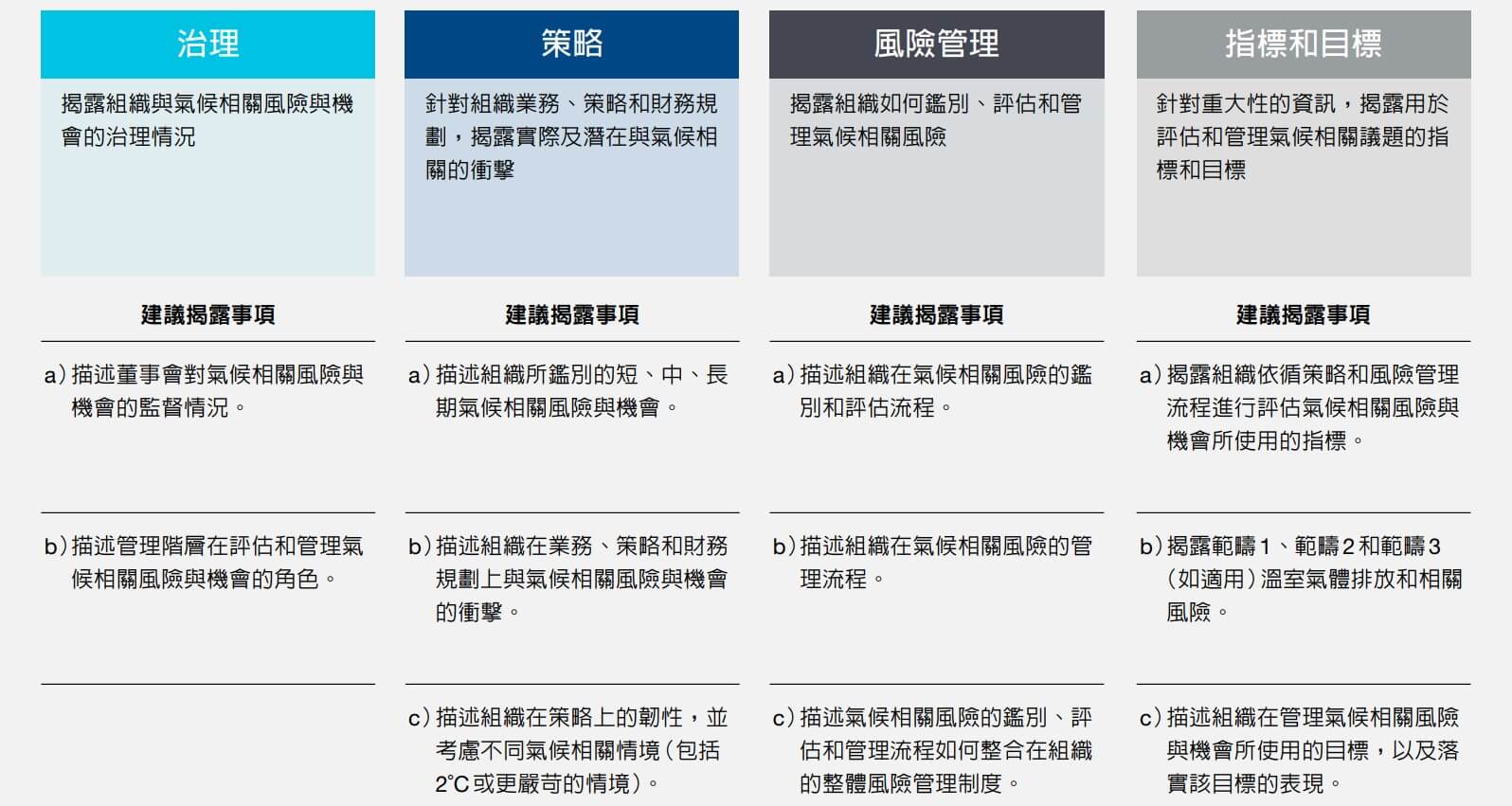 圖2 TCFD建議揭露事項 資料來源: TCFD氣候相關財務揭露建議繁體中文版