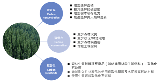 森林碳匯為重要的碳匯來源之一,依據林業保育署第四次全國森林資源調查資料,臺灣森林覆蓋率達60.7%,每年約可吸收2,185萬公噸二氧化碳,約為全國溫室氣體排放量的7%。